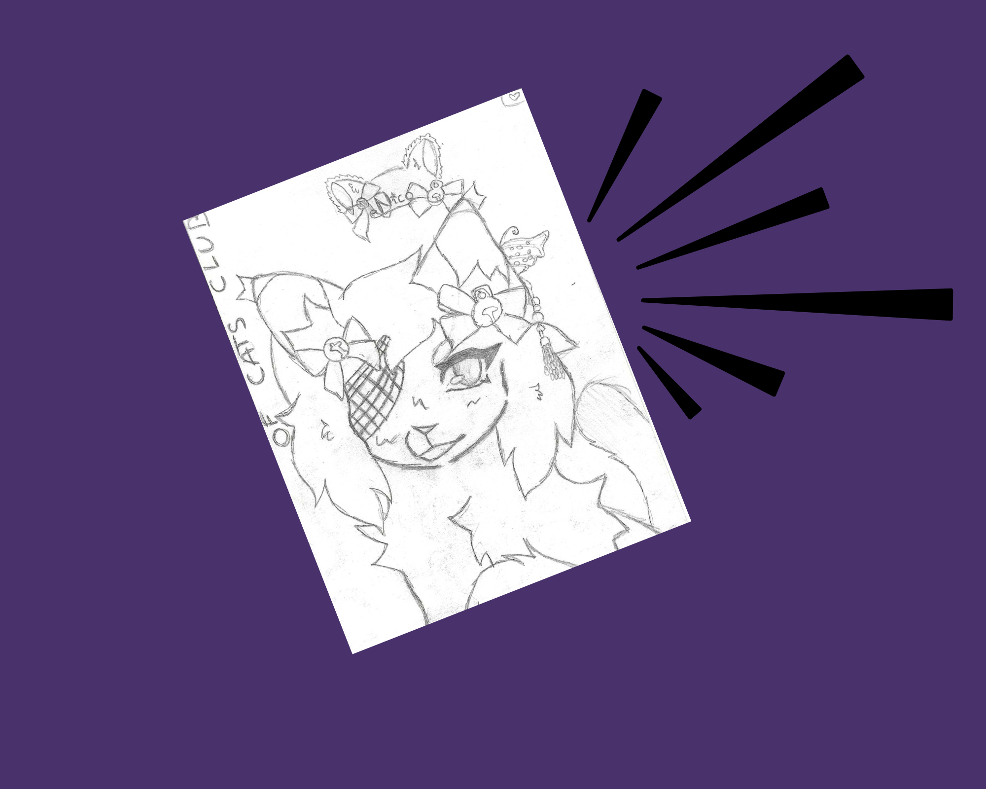 C’est ainsi qu’est né Nico. Je l’appelle souvent ma « créature à pansements ». Il a ces yeux asymétriques, ces patchs de fourrure découpés et ces cicatrices sur le museau. Mais son design ne s’arrête pas là. Il a des nœuds dans les poils, un accessoire sur sa queue, et j’ai même ajouté ces petits clins d’œil « Club de Chats » tout autour de lui pour créer un véritable univers autour d’un seul personnage.